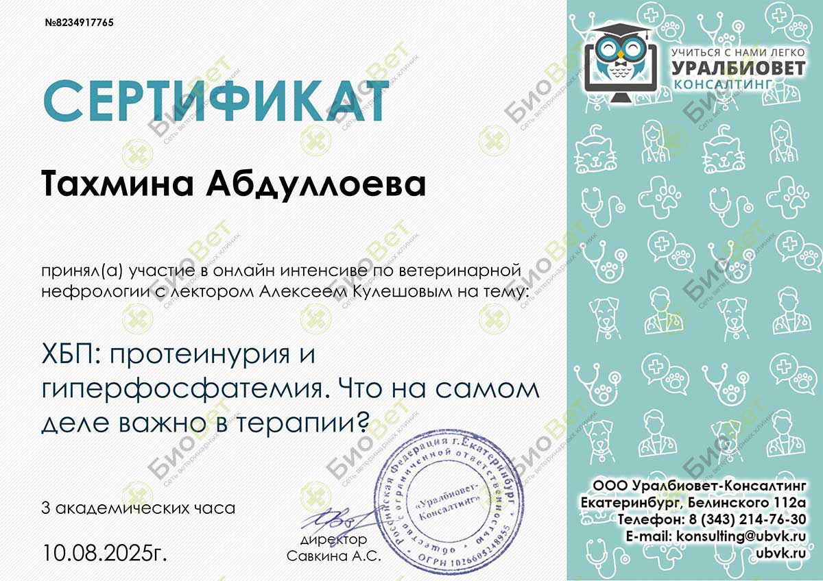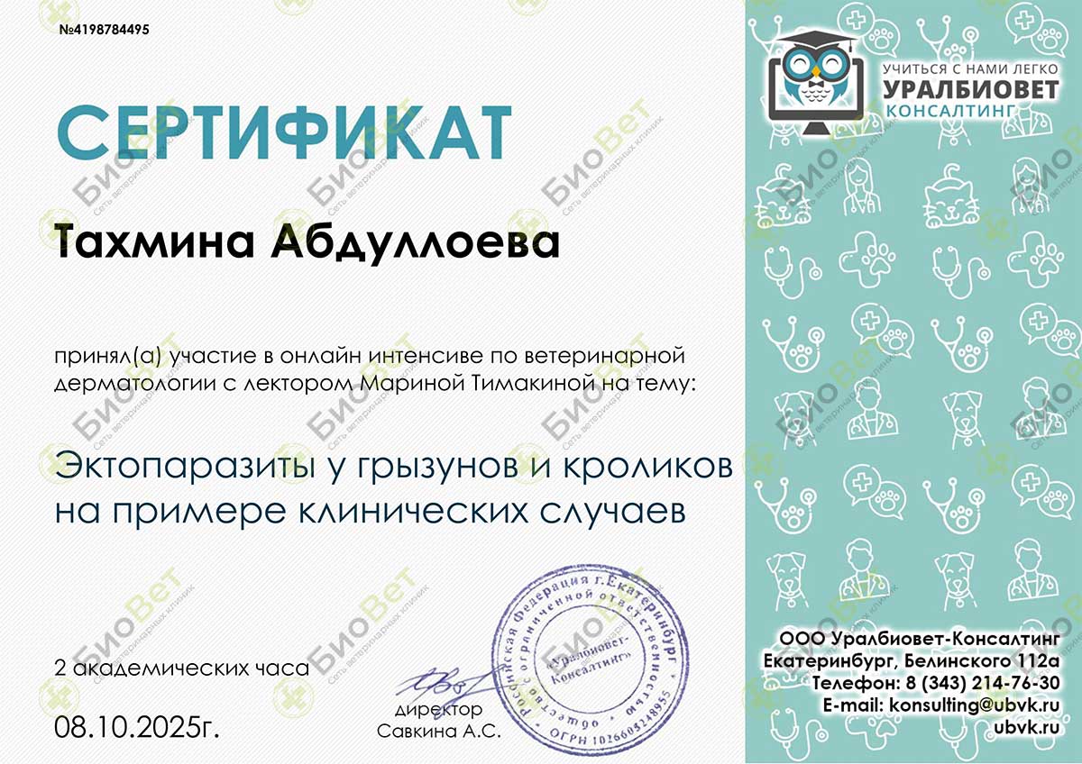 Хочу поблагодарить Абдулаеву Тину Довутбековну за оказание незамедлительной помощи моему питомцу(коту).