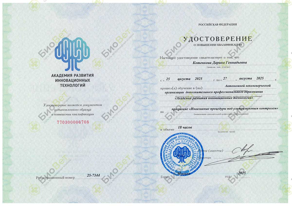 - 2024 год — эхокардиография собак и кошек на базе ИВЦ МВА г Москва